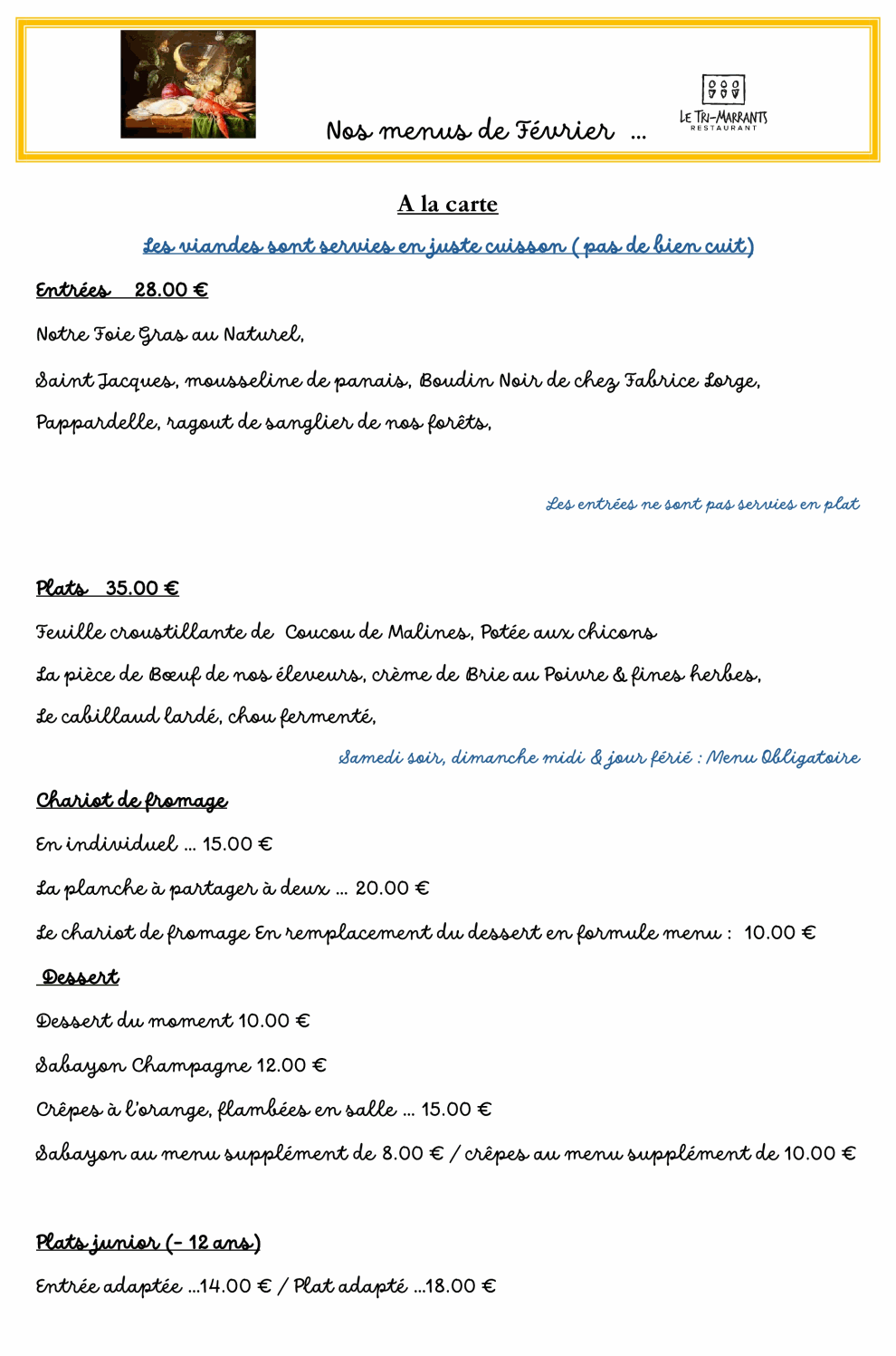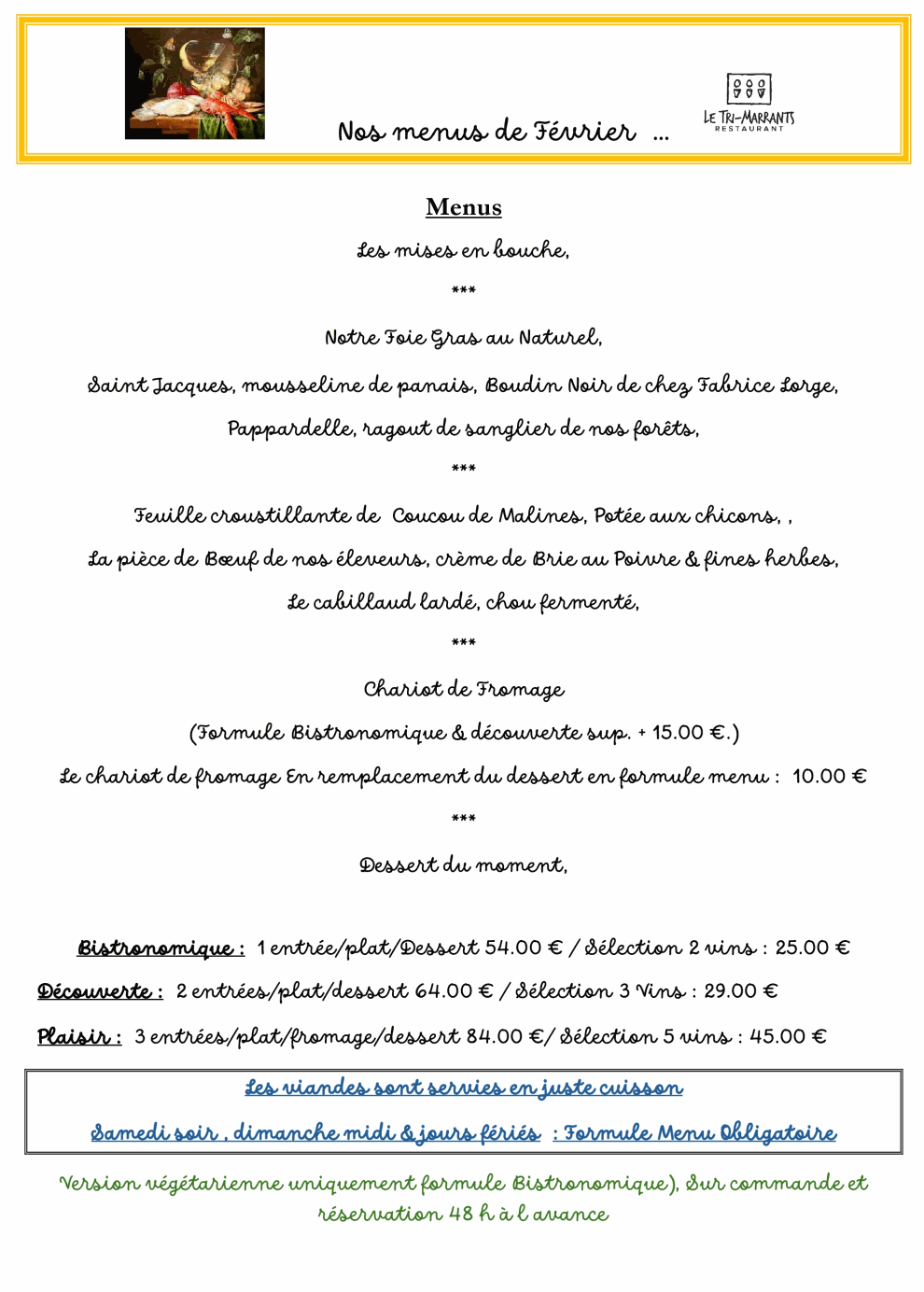 Notre newsletter vous tiendra au courant de toutes nos propositions de menus et cartes, offres spéciales ou événements, …